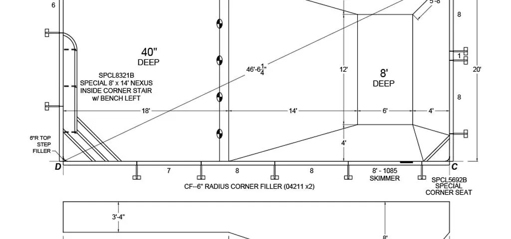 - Overall pool depth, deep end location, and slope